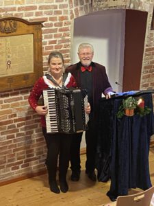 Der bekannte Rezitator und Autor Klaus-Dieter Tüxen und die Konzertakkordeonistin Meike Salzmann nehmen das Publikum mit ihren Geschichten und Liedern fröhlich und besinnlich mit in die Advents- und Vorweihweihnachtszeit.