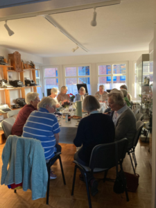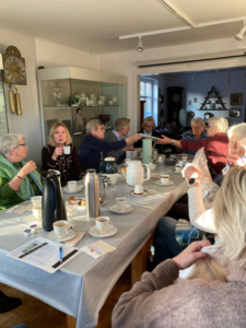 Bei Kaffee, Tee, Keksen und Kuchen entstand ein reger Austausch. Es wurden die jeweils mitgebrachten Handarbeiten vorgestellt.